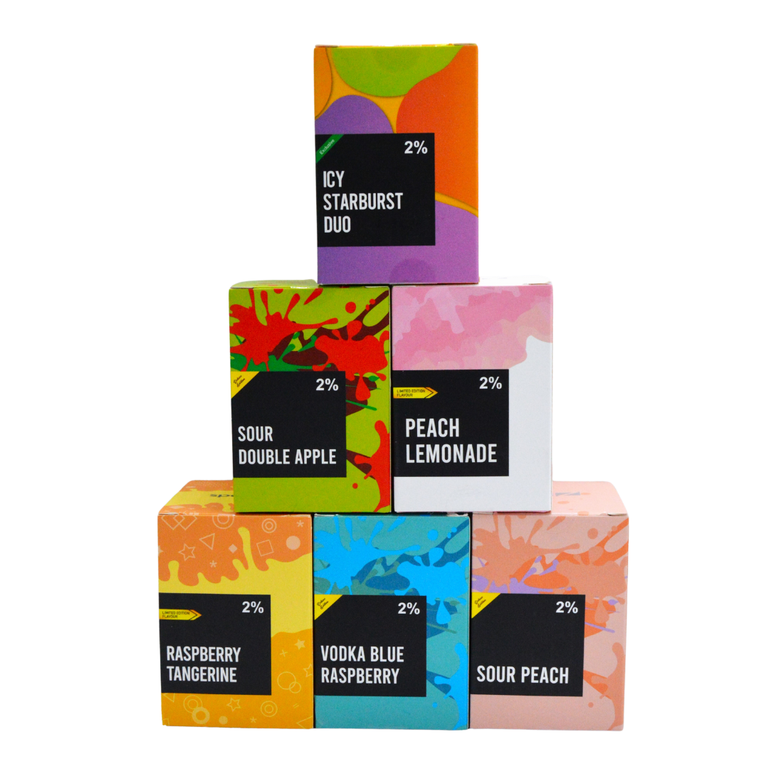 • Extensive flavour selection including fruit, ice, mint, and tobacco blends
